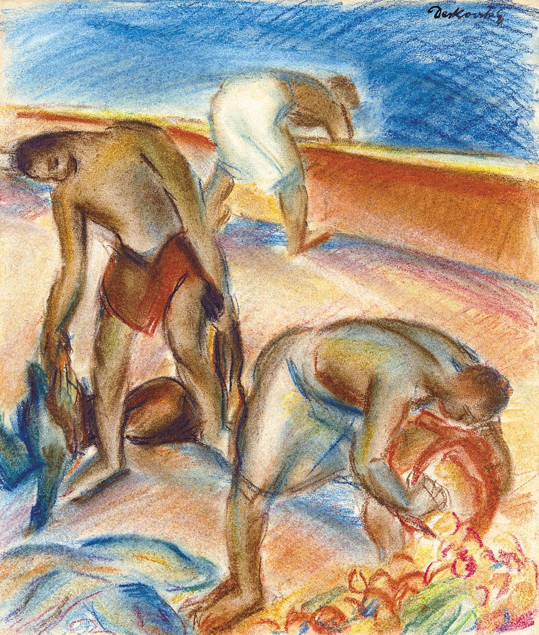 Jelenet szárnyasokat vivő férfival (Háromalakos kompozíció), 1920