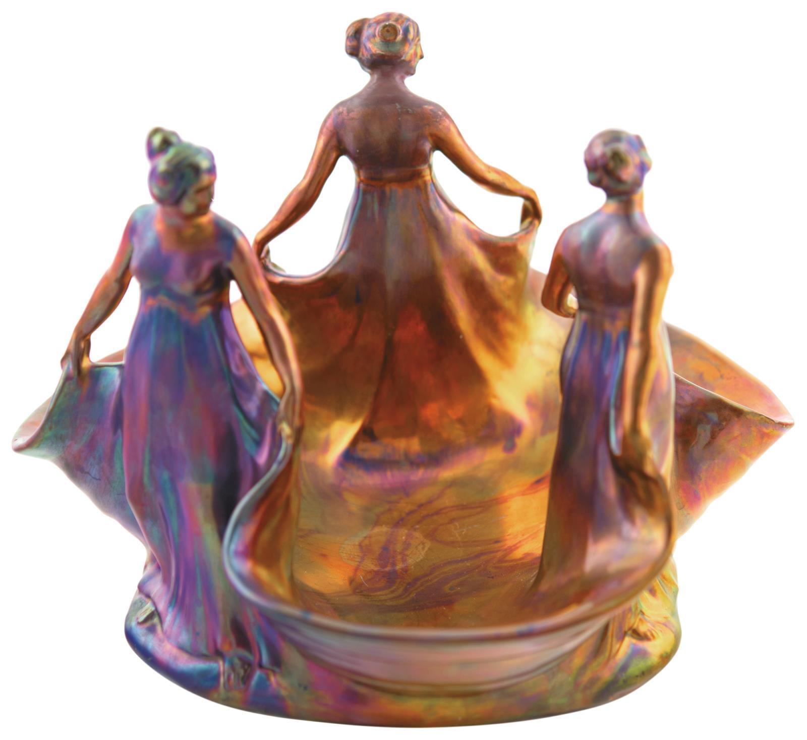 Jardiniére, with Three Dancing Female Figures, 1906, Form Plan by: Mack, Lajos