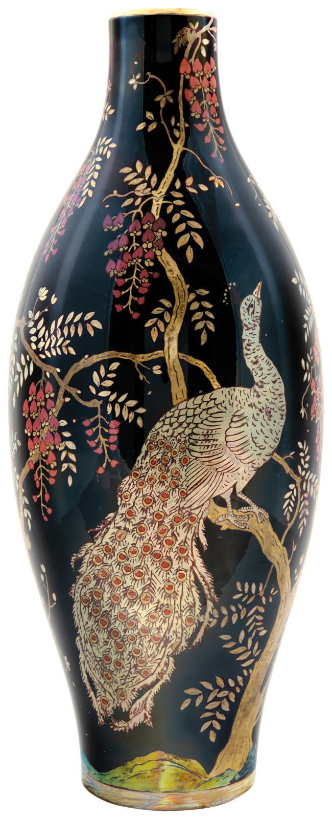 Vase decorated with Peacocks, 1928-1929, Decor Plan by: Sikorskiné Zsolnay, Júlia