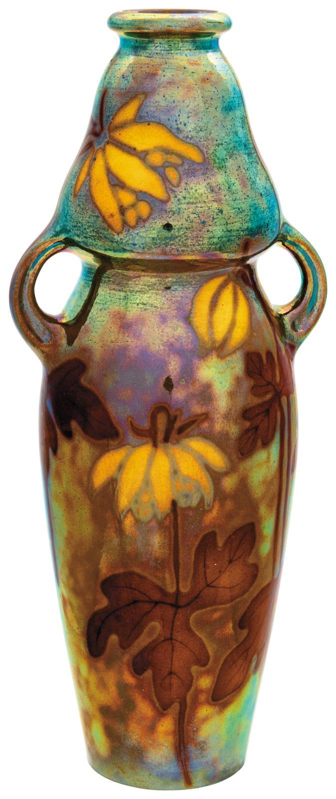 Vase Decorated with two Handles and Yellow Flowers, 1904, Form Plan by: Sikorski, Tádé