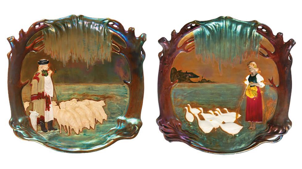 Folcloric Plaque with Relief of Maiden with Geese and its’ pair; Plaque with Relief of Shepherd and Sheep, 1902-1903, Plan by: Kapás Nagy, Mihály