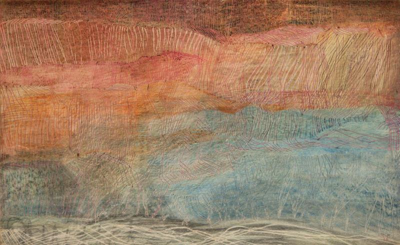 Coloured pen, tempera, pencil on cardboard