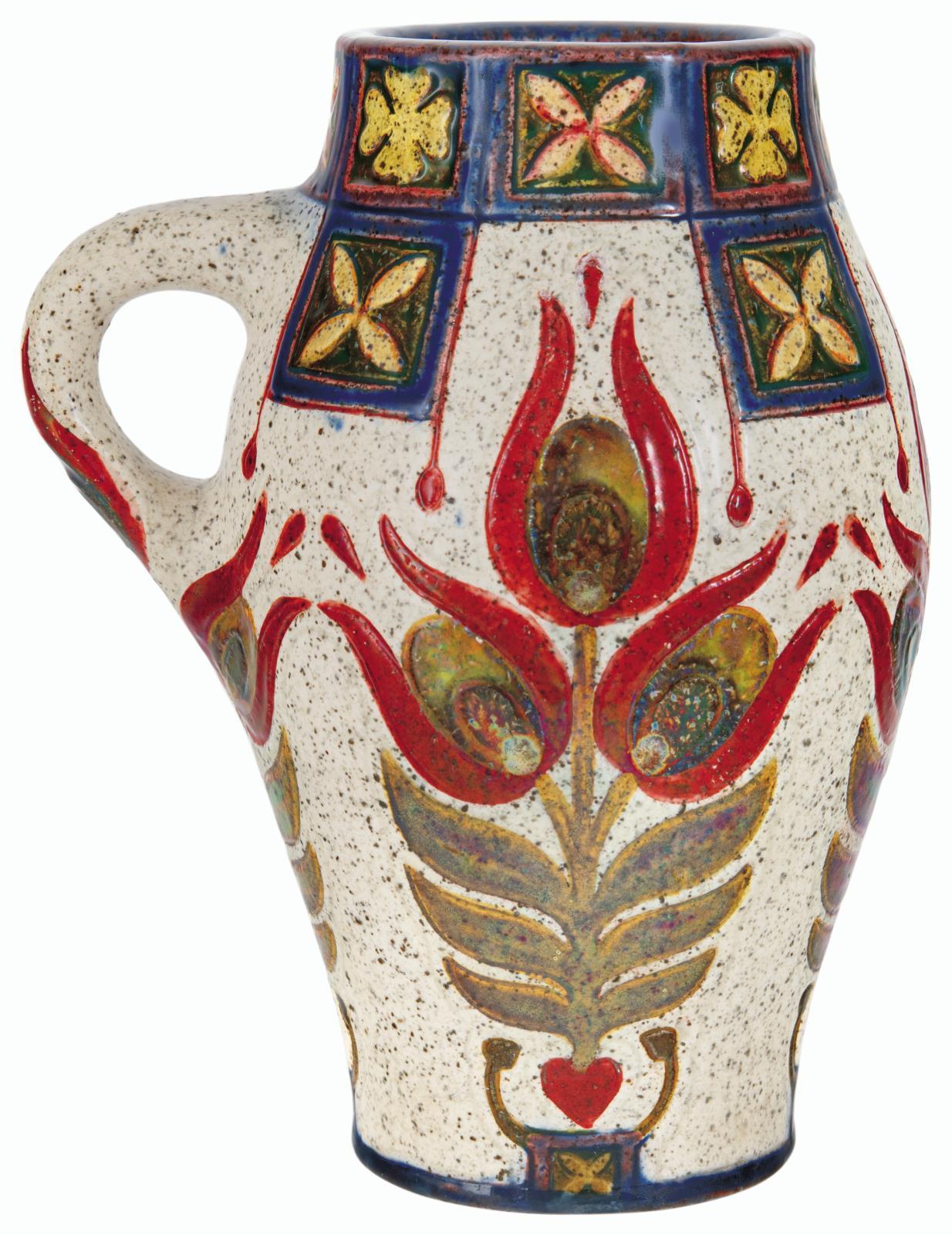 Jug with folk motif from the Grés-series, Zsolnay, 1904