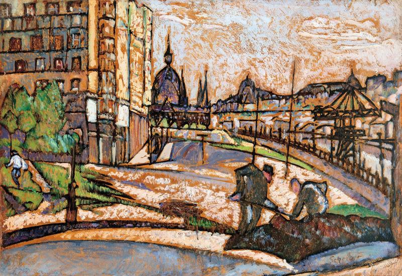 Road workers on the Bank of Danube, around 1921