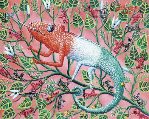 Signed on the reverse: Galambos T. (Nagy kaméleon)