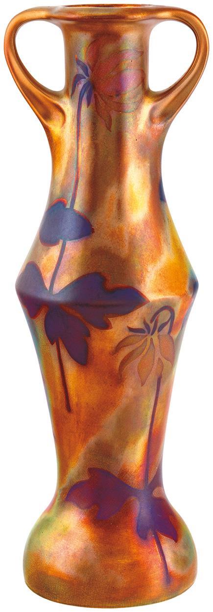 Vase with two handles and impressed flower decoration, around 1902