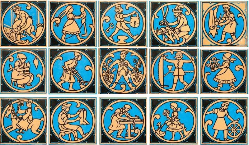 Nikelszky Géza (1877-1966) Decors, 15 pieces, FOR THE ZSOLNAY