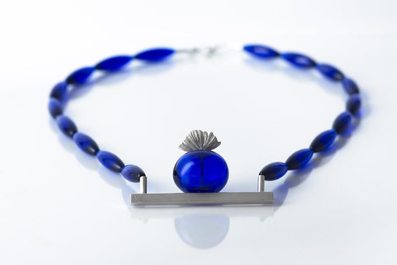 Blown hollow glass bead, flameworked glass beads, silver