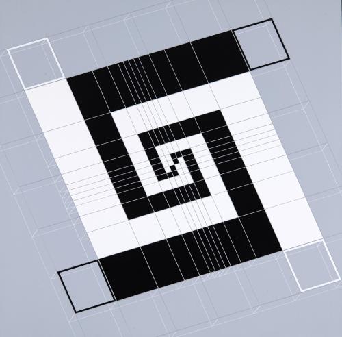 Signed on the reverse: Living-spiral-space {conceptual-geometry-by-Fibonacci-sequence}, 2020 Laszlo Otto No. 25