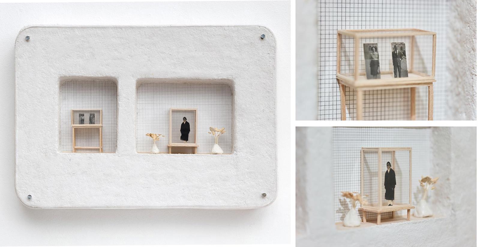papírmassza, fa, fotó, karton, ceruza, plexi lemez