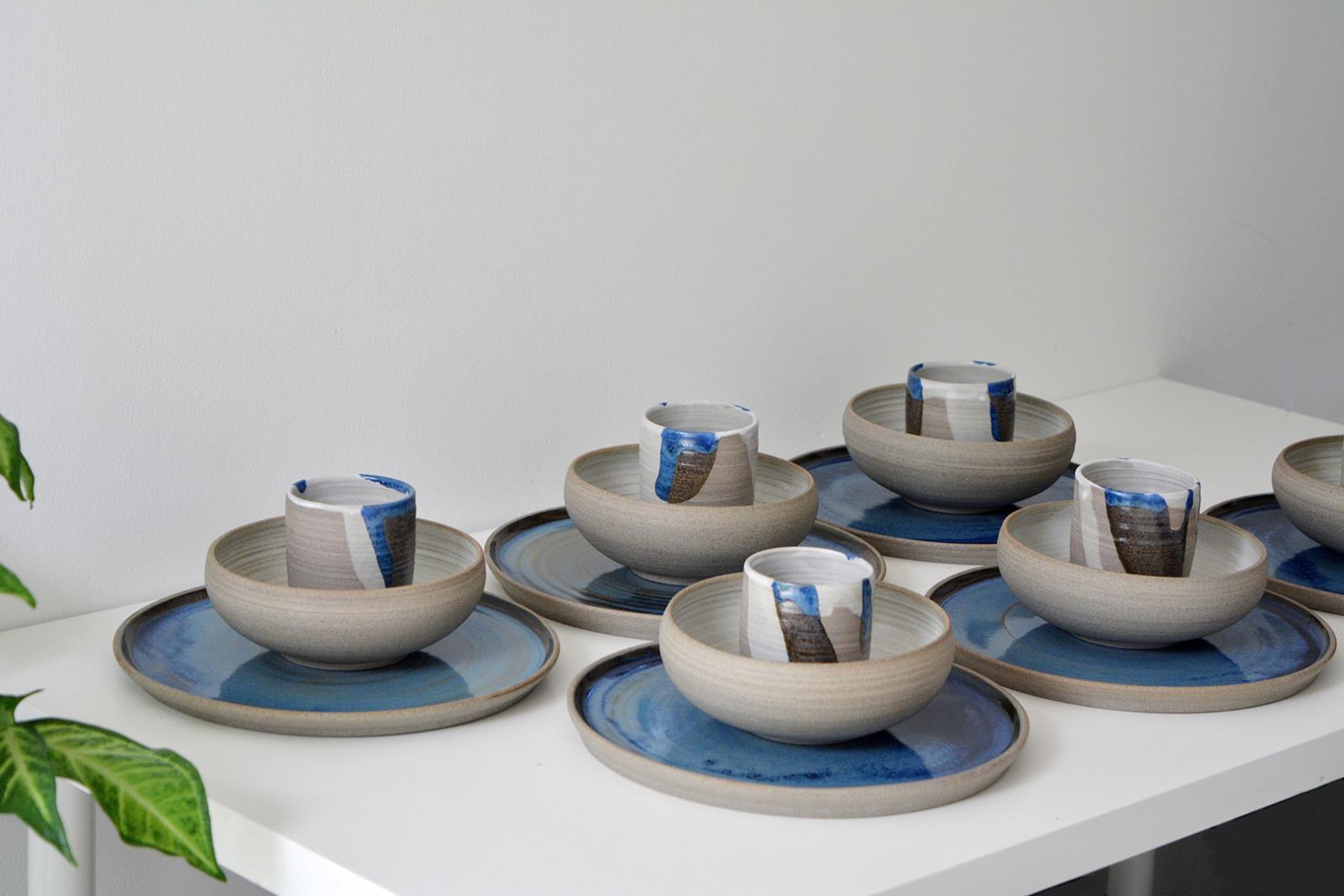 6 db lapos főételes tányér, 6 db mélytányér, 6 db pohár