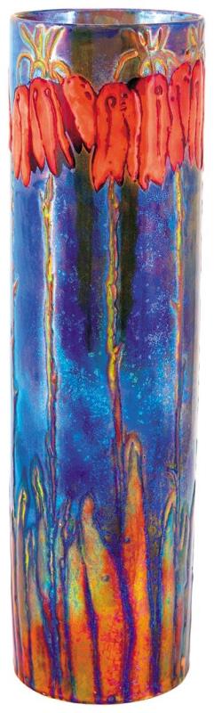 Cylinder Vase ornamented with statuesque Lilies, Zsolnay, around 1898