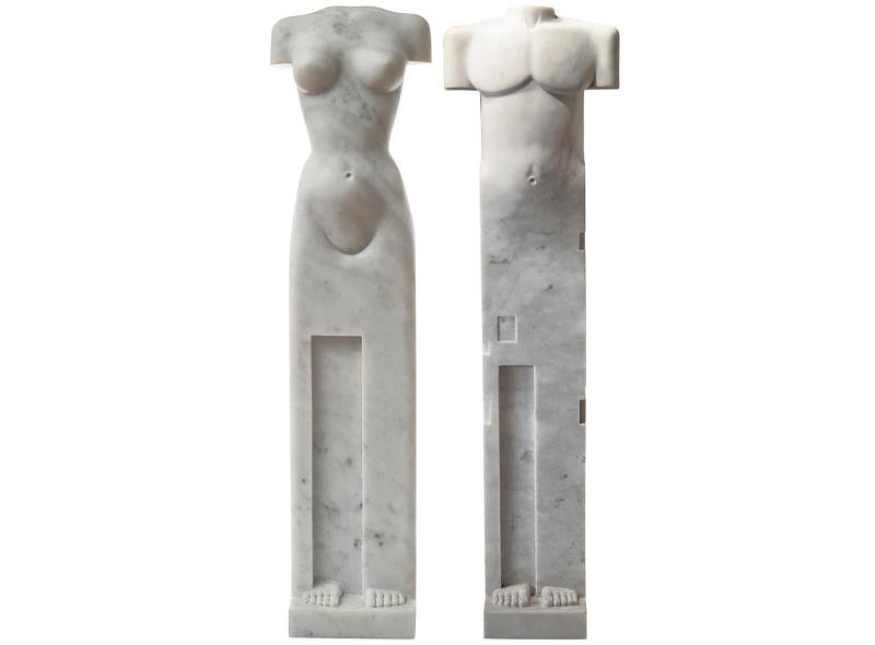 A Pénelopé szobor – Signed below: TL, Az Odüsszeusz szobor – Not signed