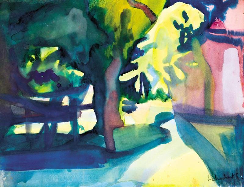 Signed bottom right: Schubert E., On the reverse: Legacy stamp, Inscription on the reverse:
