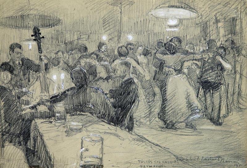 Signed bottom right: Füstös kis kaszinó Bandi zenél Emlékül Lacinak Rónai 1917