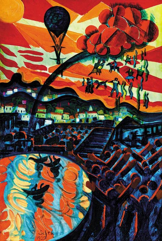Signed bottom left: Scheiber 1925.; Inscription on the reverse: Kugler u., Japán tüzijáték nappal a berlini Luna-parkban, Revü 4. szám mell., Szarvas