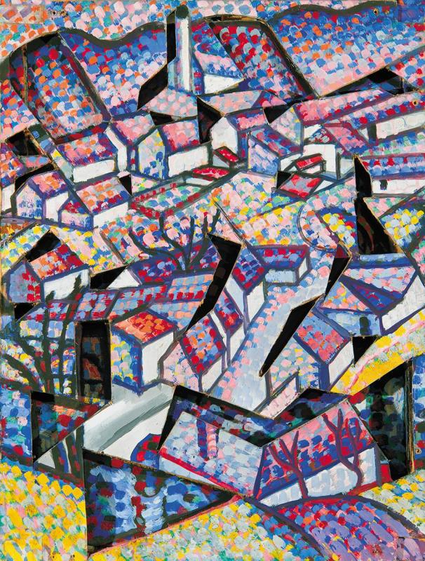 Signed on the reverse: 2 síkú relief festmény Pál István festőművész Gyöngyös-Solymosi tájkép.; A többsíkú képmegoldás szerzői joga és reprodukció joga fenntartva