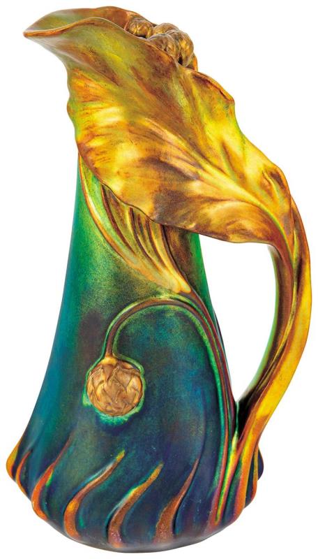 Decor Jug with Berries and leaf motifs, Zsolnay, 1902, Design by: Mack Lajos