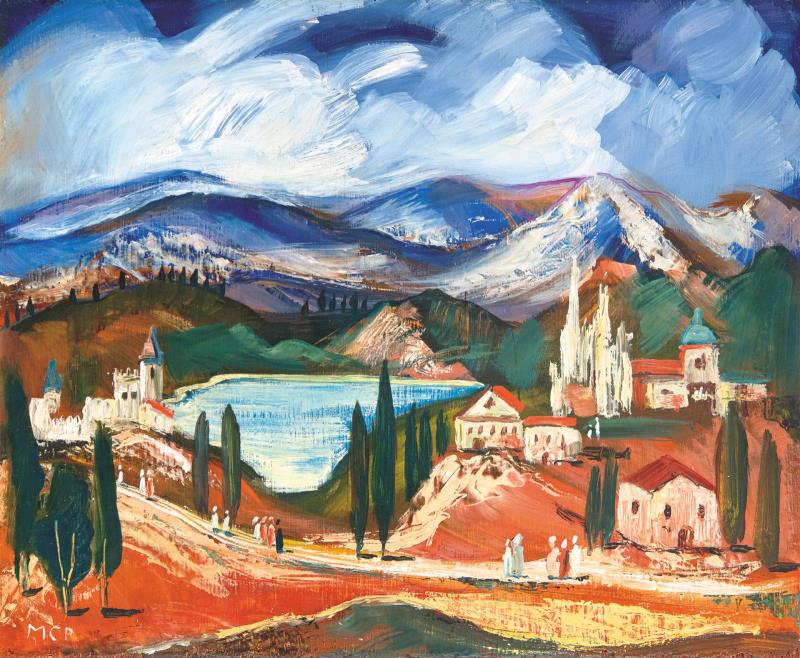 Signed bottom left and on the reverse: MCP