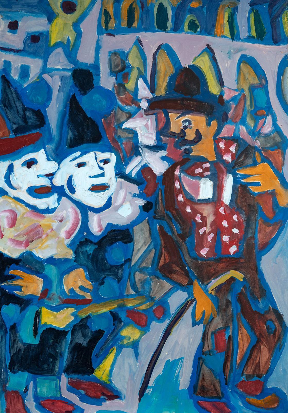 Oil, paper on paperboard