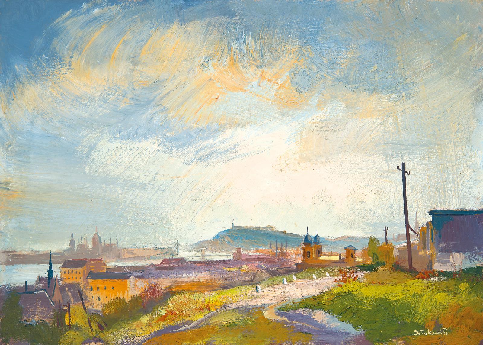 Signed bottom right: Istókovits; Signed on the reverse: Budapest a Rózsadombról, 1956