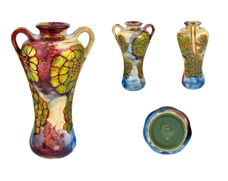 Vase, with two handles and Gold Flowers, Zsolnay, 1900