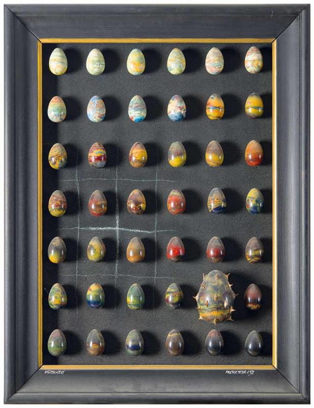 Signed bottom right: Prutkay Péter 1988;Signed bottom left: Gyűjtemény; On the reverse: Tojás gyűjtemény, 1988 Prutkay Péter