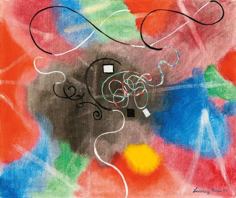 Signed bottom right: Lossonczy Tamás 1971; Signed on the reverse: Csapongás 1971