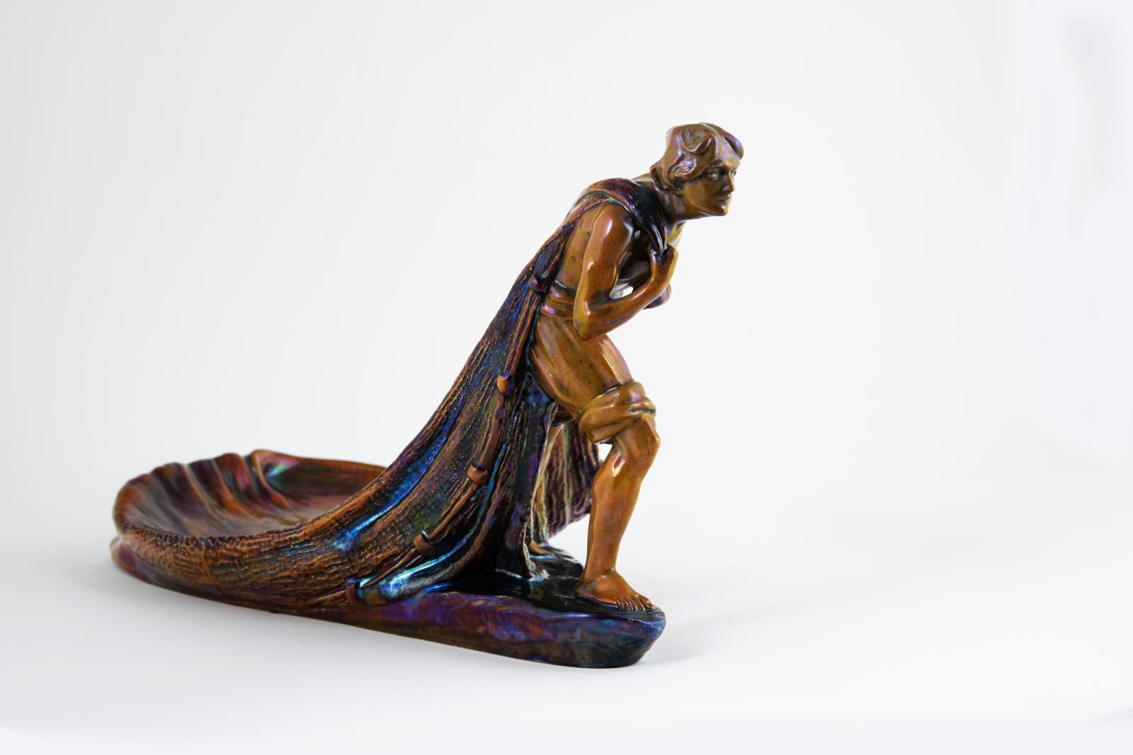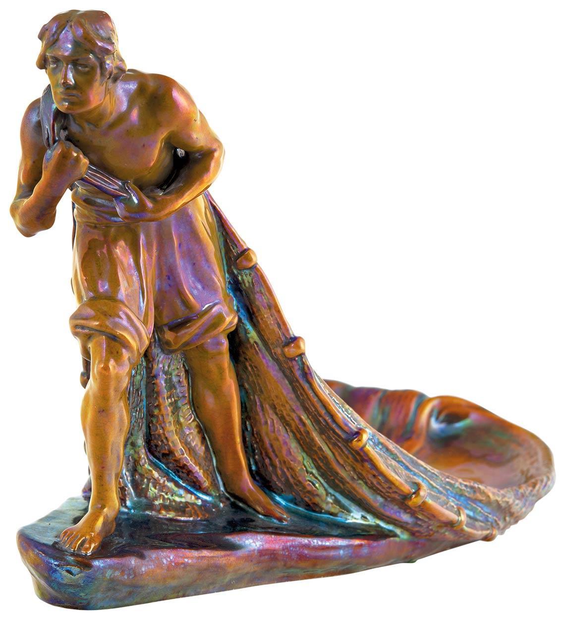 Bowl, Fisherman pulling a Net, Zsolnay, 1901