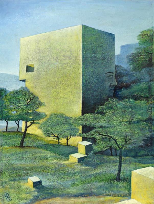 Signed bottom left: Sz J 2007; Signed on the reverse: Szurcsik József "Kert" 2007 olaj, vászon 40 x 30