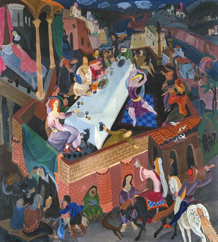 Signed bottom left: HannaMela; Signed on the reverse: Hanna Mela Menyegző 1932