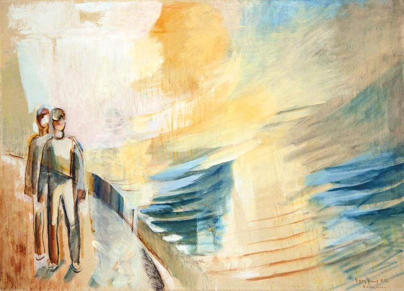 Signed bottom right: Egry József 933 Badacsony; Inscription on the reverse: Egry József 933 Balaton part figurákkal olaj festm.