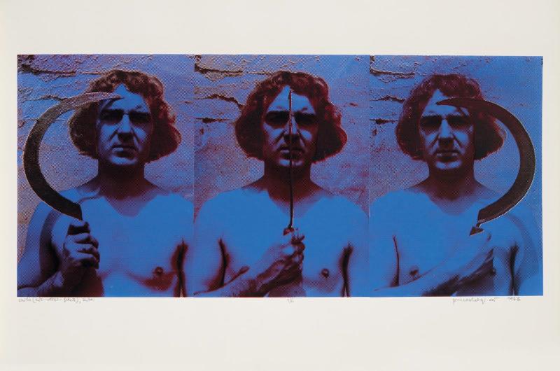 Signed bottom right: Pincehelyi 1973; Signed bottom left: Sarló (kék-vörös-fekete ), szita; Signed down in the middle: 1/6