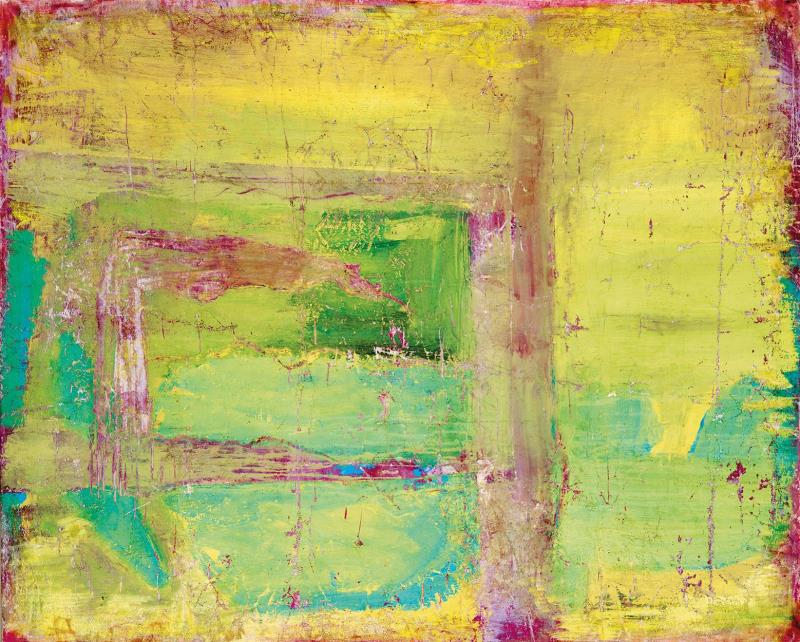 Signed bottom right: AJ; Signed on the reverse: Aknay János Szentendre cím: Emlék 60 x 120 akril-vászon 2008