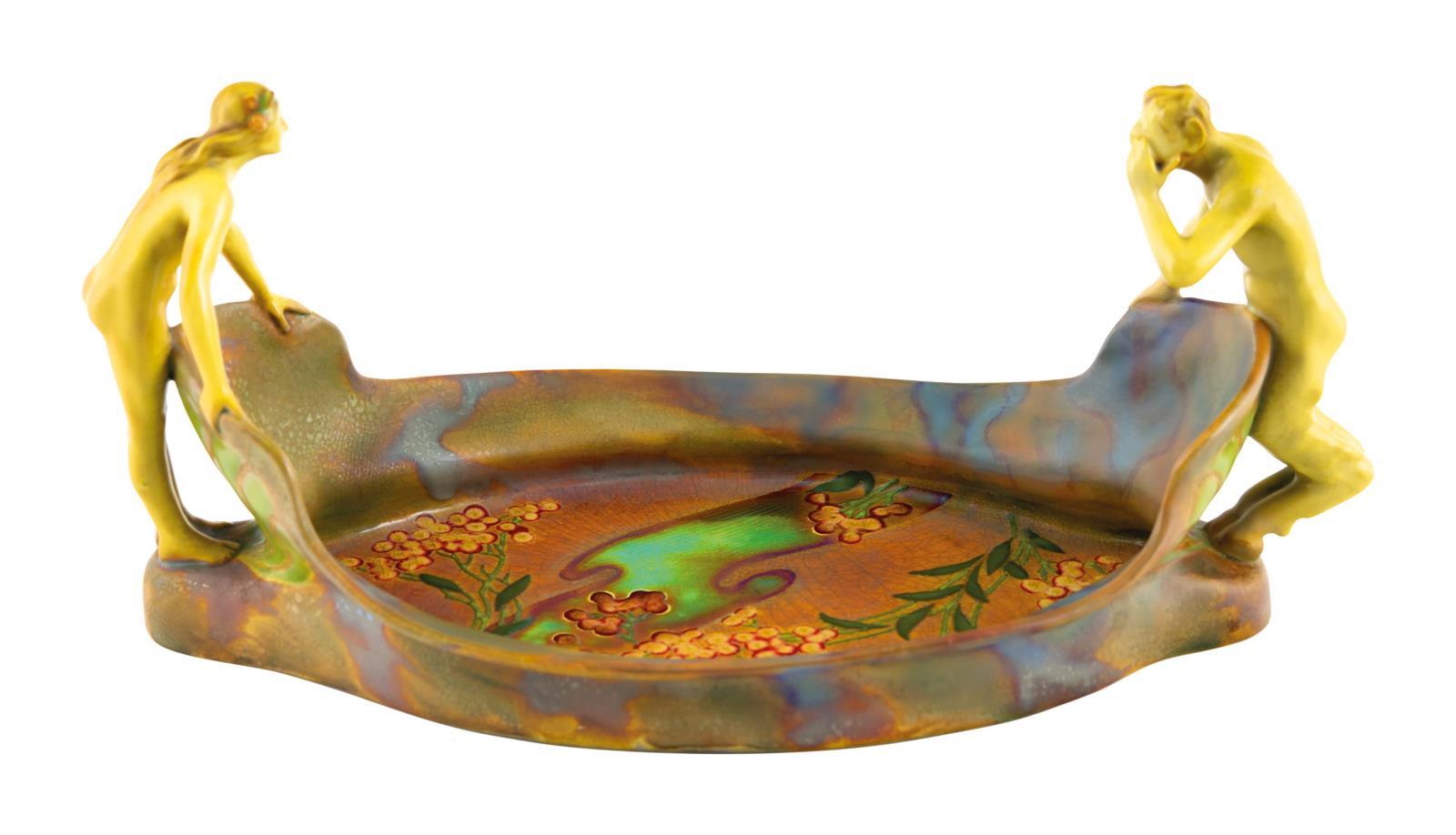 Decorative Bowl with Nymph and Faun, Zsolnay, 1903