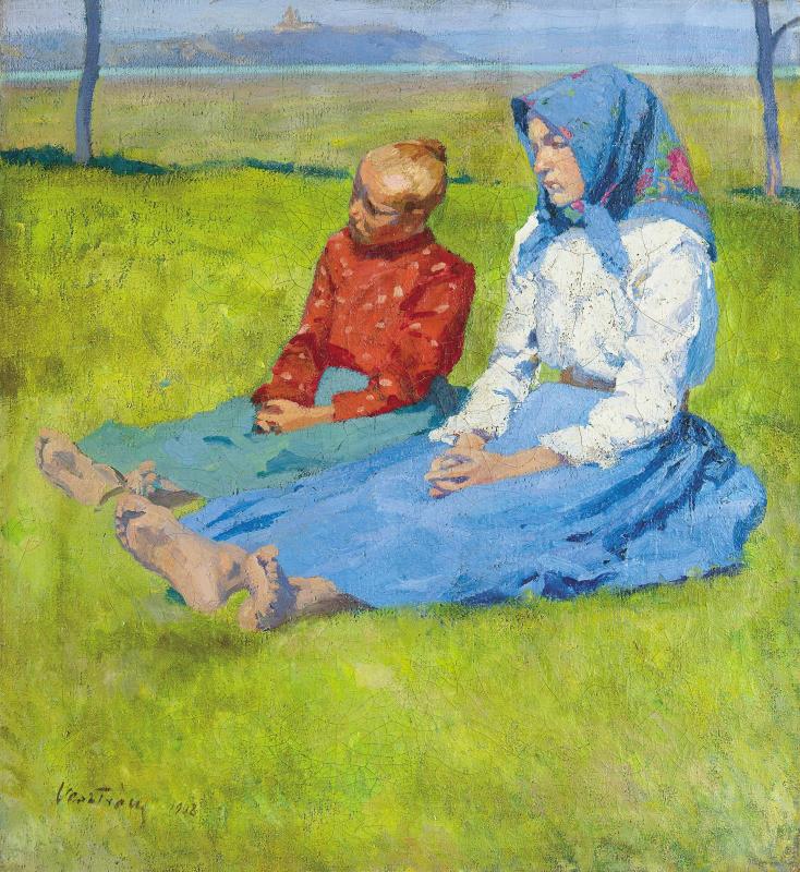 Girls on the Meadow, with Tihany Abbey in the background, 1908
