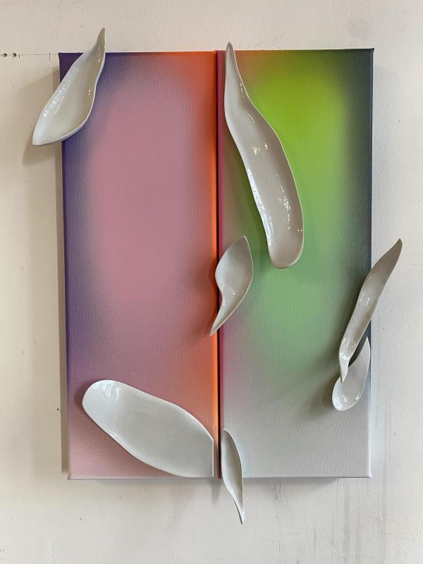Porcelán, akril, vászon, fa