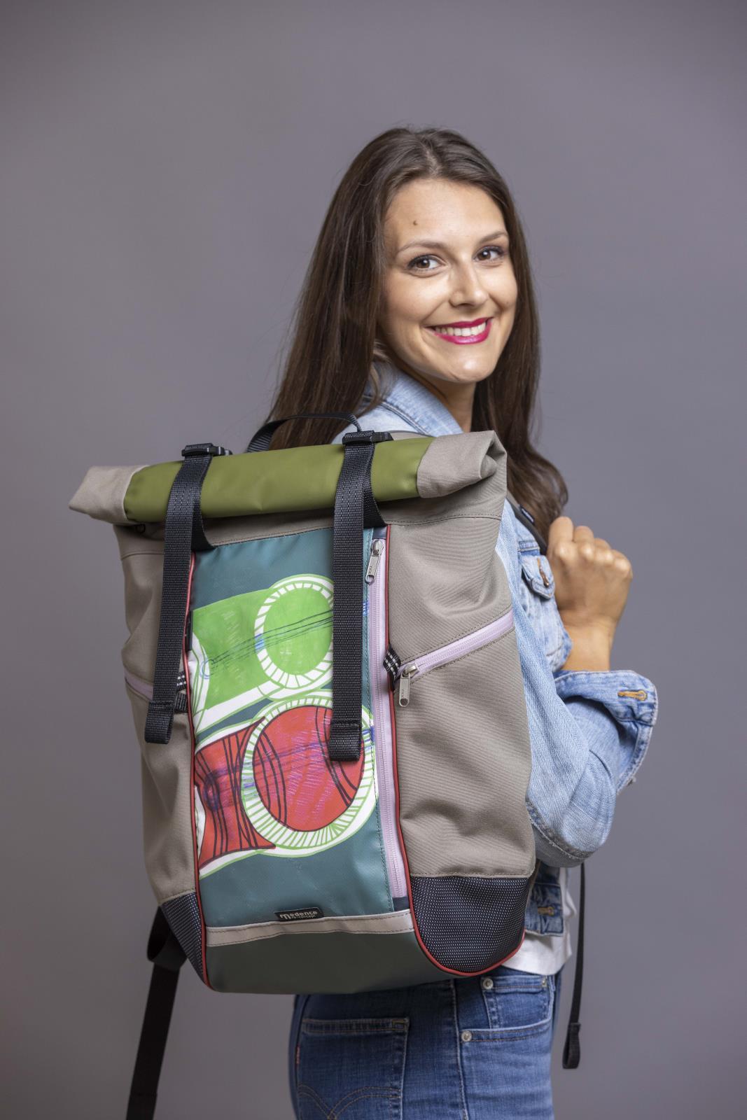 Újrahasznált molinóból és gyári textil anyagokból készített táska