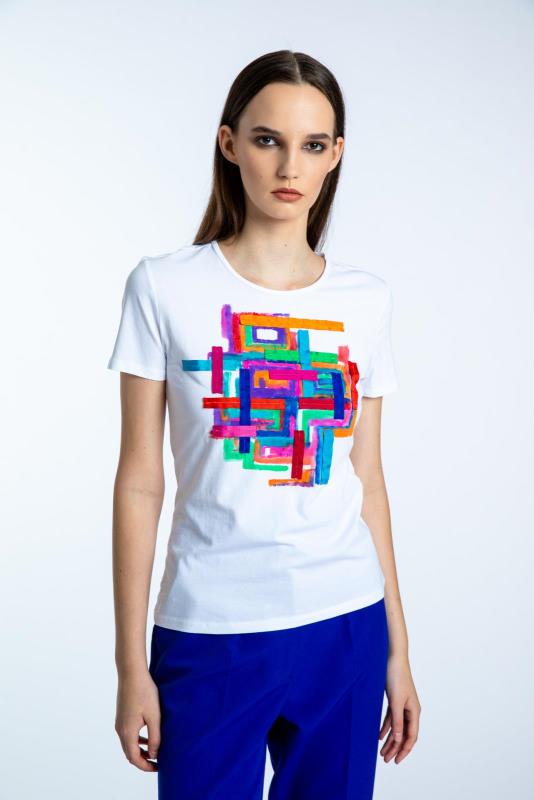 Kézzel festett és szalagozott pamut póló