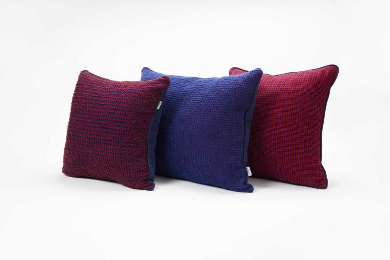 3 pcs, made by dobby handweaving, wool, fuchsia - navy