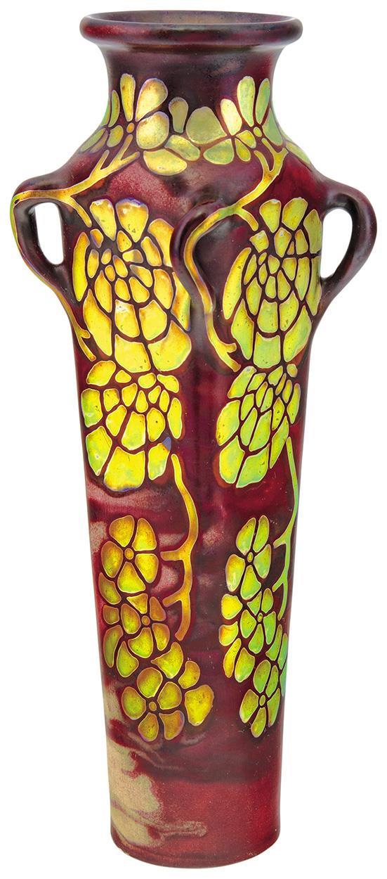 Vase with Four Handles and Golden Flowers, Zsolnay, 1900, FORM PLAN PRESUMABLY BY: SIKORSKI TÁDÉ, DECOR PLAN: 1900