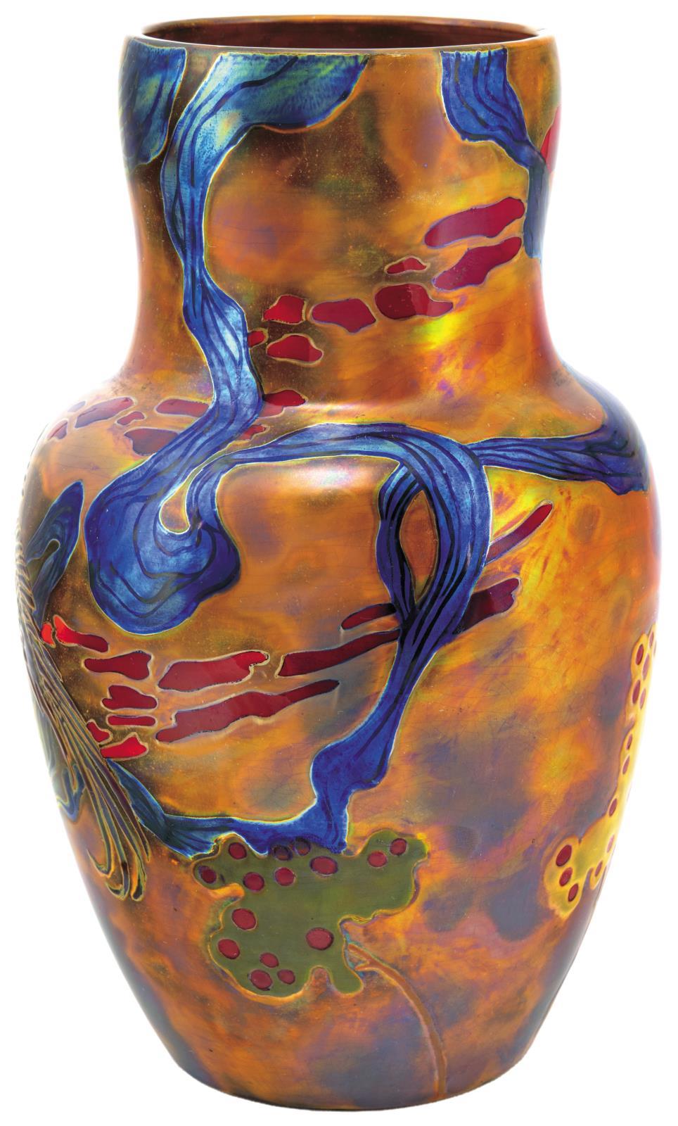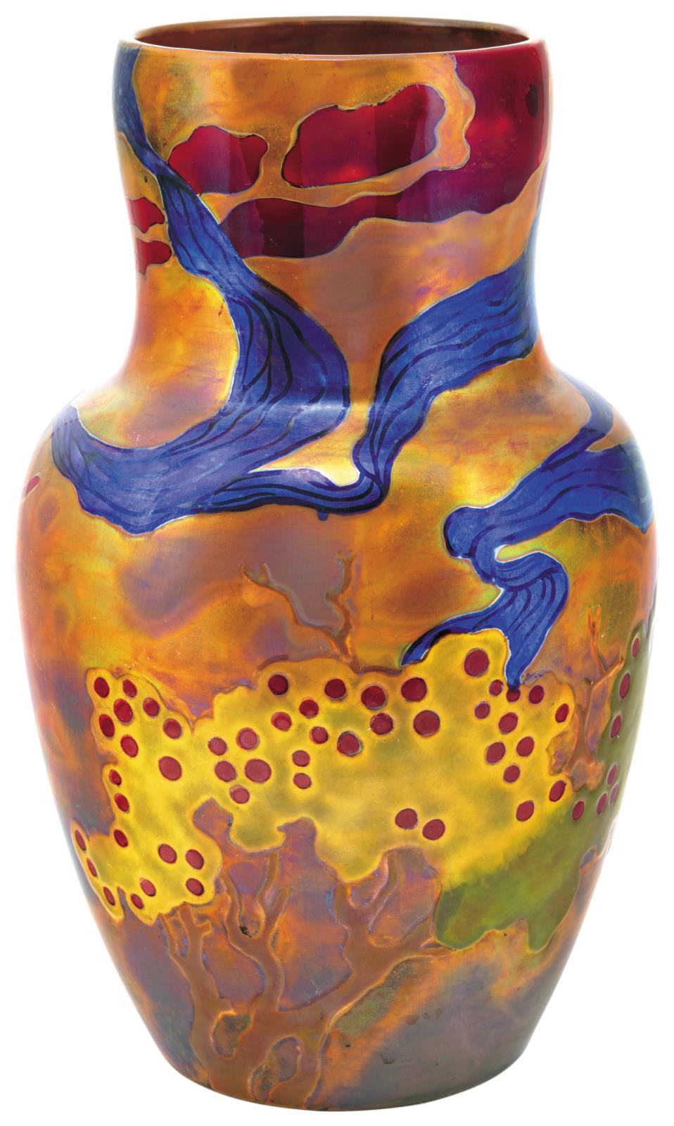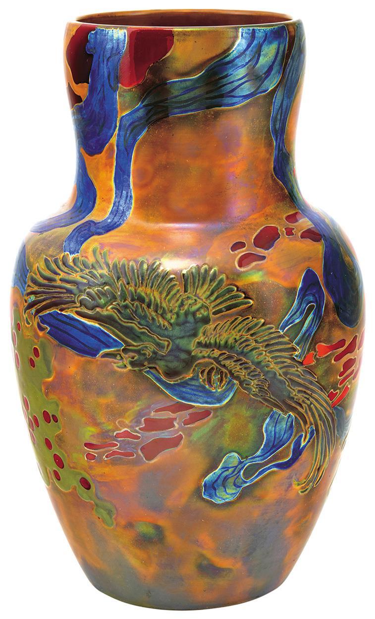 Vase with Expressive Landscape and Bird, Zsolnay, 1909