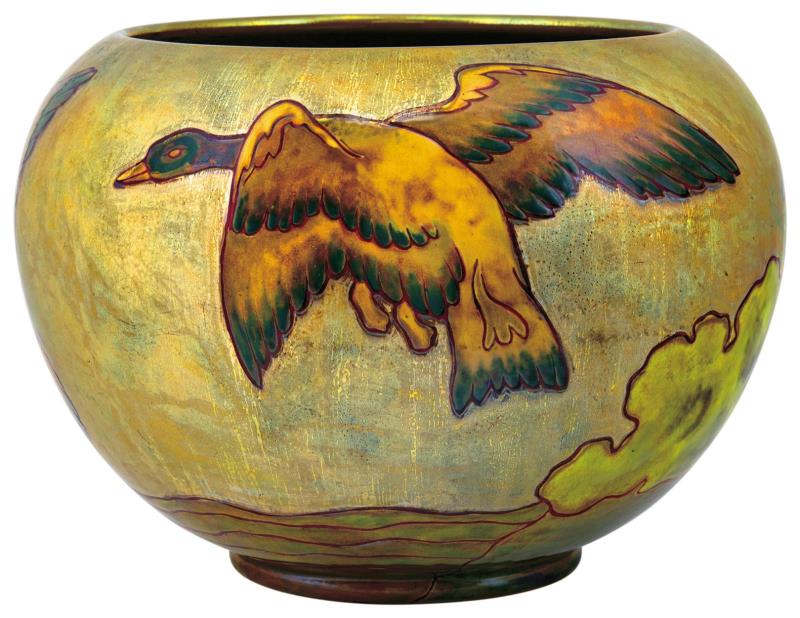 Flowerpot with Wild Geese, From the Venetian Series, Zsolnay, 1902