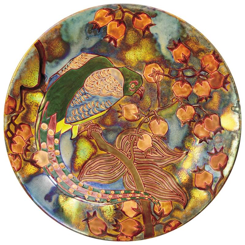 Wall-Plaque with a Bird of Paradise Sitting on a Branch of Medlar, Zsolnay, 1902, DEKOR PLAN PRESUMABLY BY: BRAUN FERENC