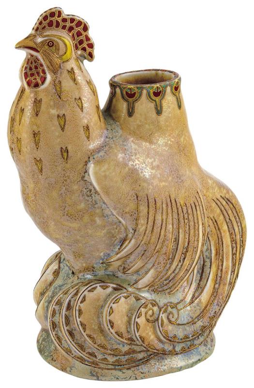 Vase, Rooster, Zsolnay, 1907