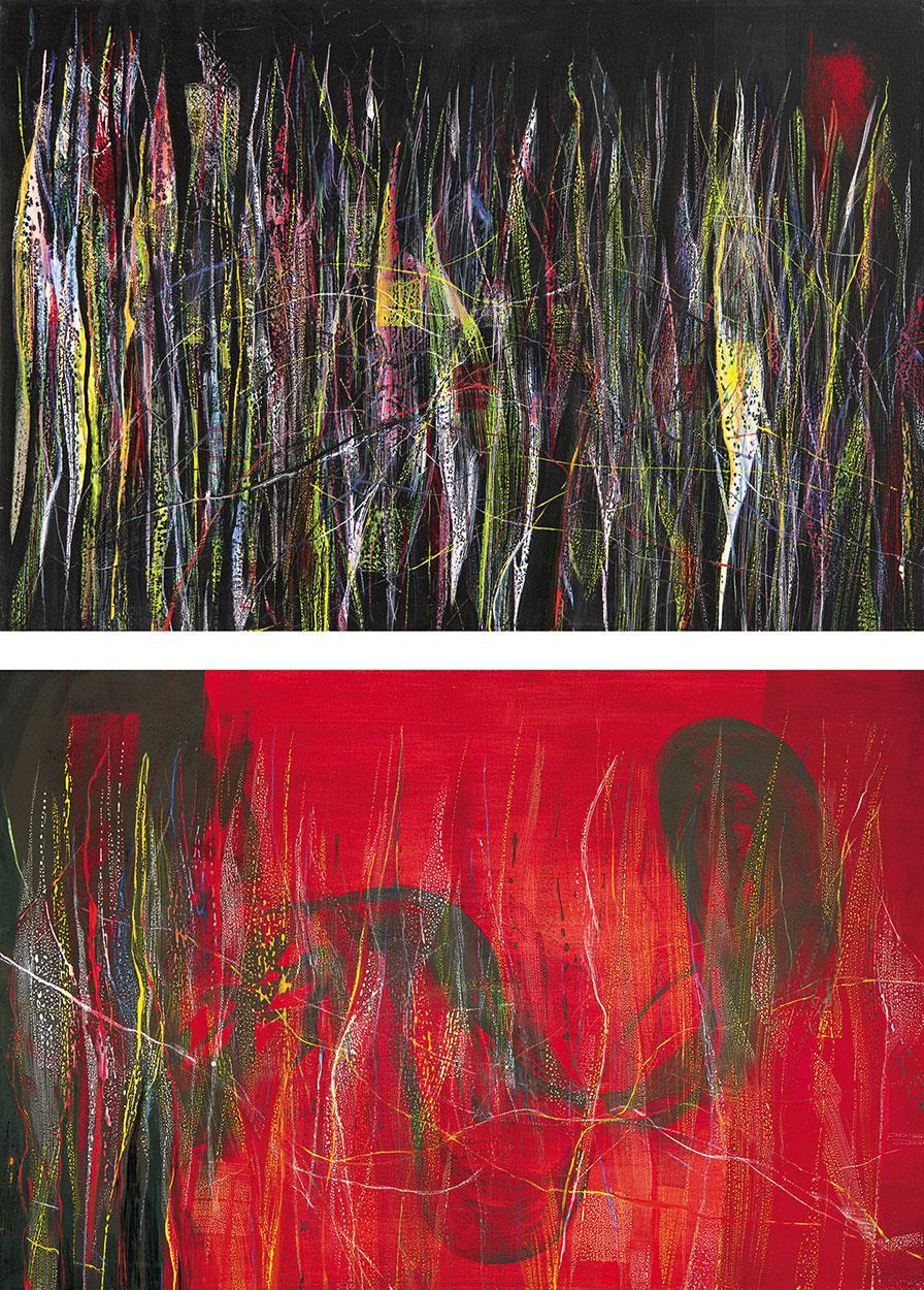 On both pieces signed on the reverse: Gábor Áron 2014 On the first piece signed on the stretcher: Gábor Áron "Fény labirintus I." 2014On the second piece inscription on the reverse: Gábor Áron "Fény labirintus II." 2014