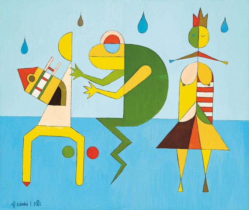 Signed bottom left: ef. Zámbó I. 9EFZ2 Signed on the reverse: A béka elbizonytalanodik mert nem tudja, hogy királlyá vagy királylánnyá változzon vissza. 1992