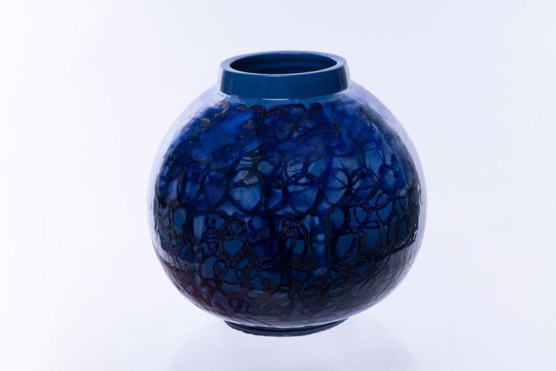 kézzel korongozott kék porcelán