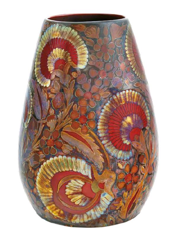 Vase, depicting Carnations, Zsolnay, 1900-1905, DECOR PLAN BY: ZSOLNAY, JÚLIA