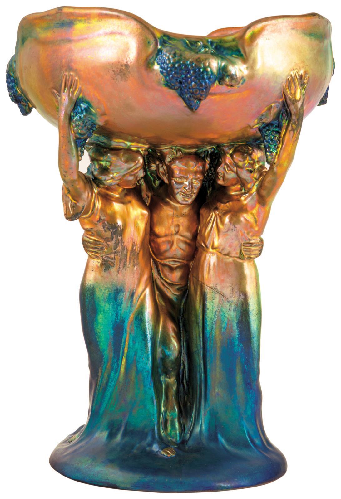Talpas Bacchanália-gyümölcstál faunnal és nimfákkal, 1910, Formaterv, mintázta: Kapás Nagy Mihály